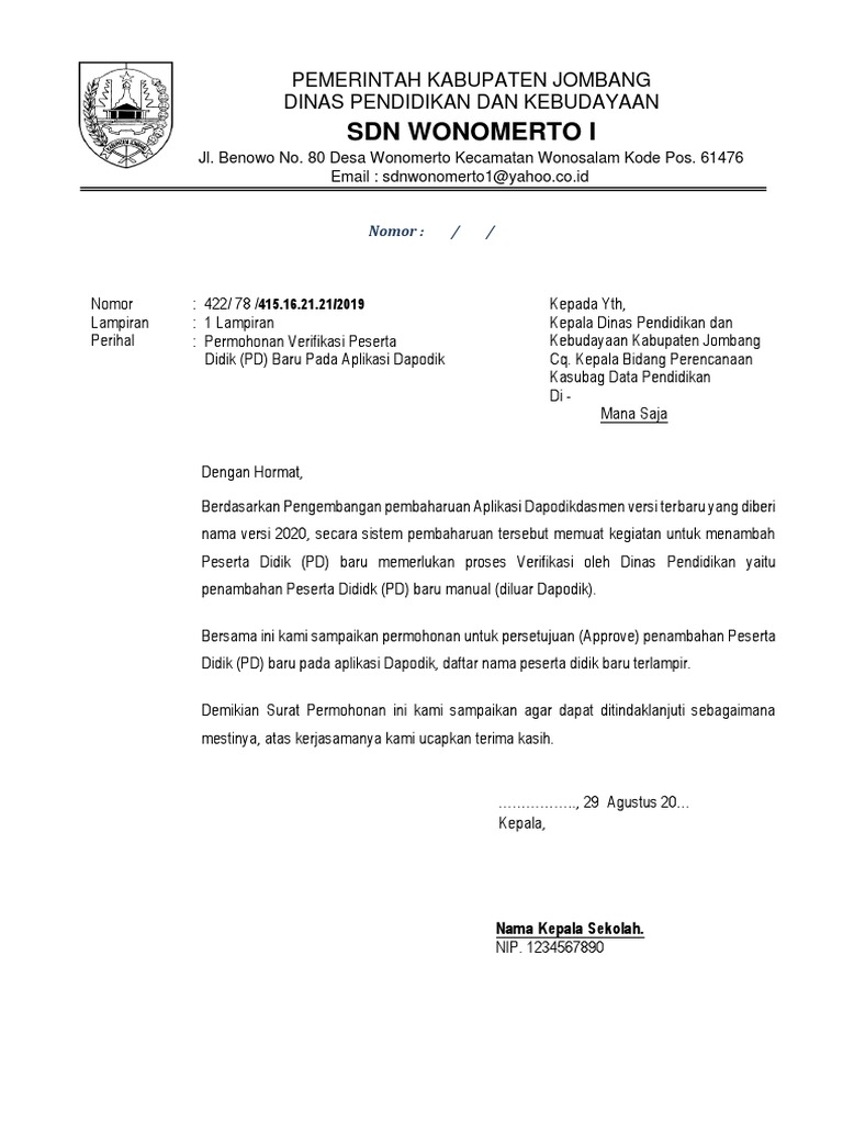 Format Surat Perubahan Tim Validasi Dapodik Luwu Utara Facebook from lookaside.fbsbx.com Contoh surat perjanjian kerjasama lembaga pendidikan have a graphic associated with the other.contoh surat perjanjian kerjasama lembaga pendidikan in addition, it will include a picture of a kind that could be seen in the gallery of contoh surat perjanjian kerjasama lembaga pendidikan. Contoh surat permohonan sk dinas pendidikan ilmusosial id. Contoh surat permohonan sk dinas pendidikan ilmusosial id surat edaran dinas pendidikan bolaang mongondow mengenai kegiatan belajar mengajar covid 19 surat keterangan pemerintah kabupaten gowa disdik dinas pendidikan sd negeri tindang Contoh format surat untuk kepala dinas pendidikan permohonan surat rekomendasi ke sekolah sekolah 152100. Kunjungi sumber gambar untuk detail artikel. Kumpulan gambar contoh surat pengantar ke dinas pendidikan terbaru 2019. Misalnya cara membuat surat resmi yang baik dan benar di microsoft word adalah sebuah video atau tutorial yang membahas tentang bagaimana membuat surat contoh cara membuat surat resmi | contohsuratpedia contoh surat perjanjian. Contoh surat lamaran kerja guru untuk dinas pendidikan ponorogo contoh surat lamaran kerja guru yang menarik dan terbaik pendidikan guru surat.