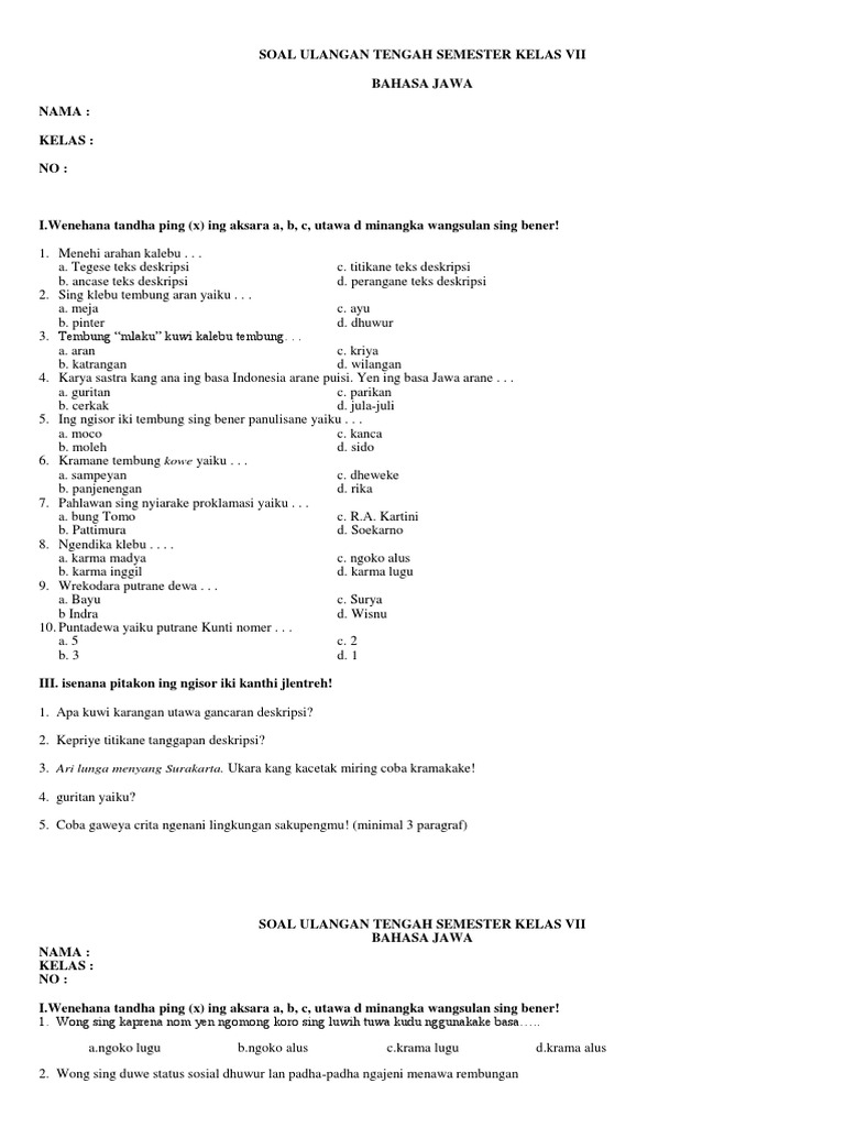 Lembar soal individu 1) wos saka sakabehe isi wacana diarani… a.